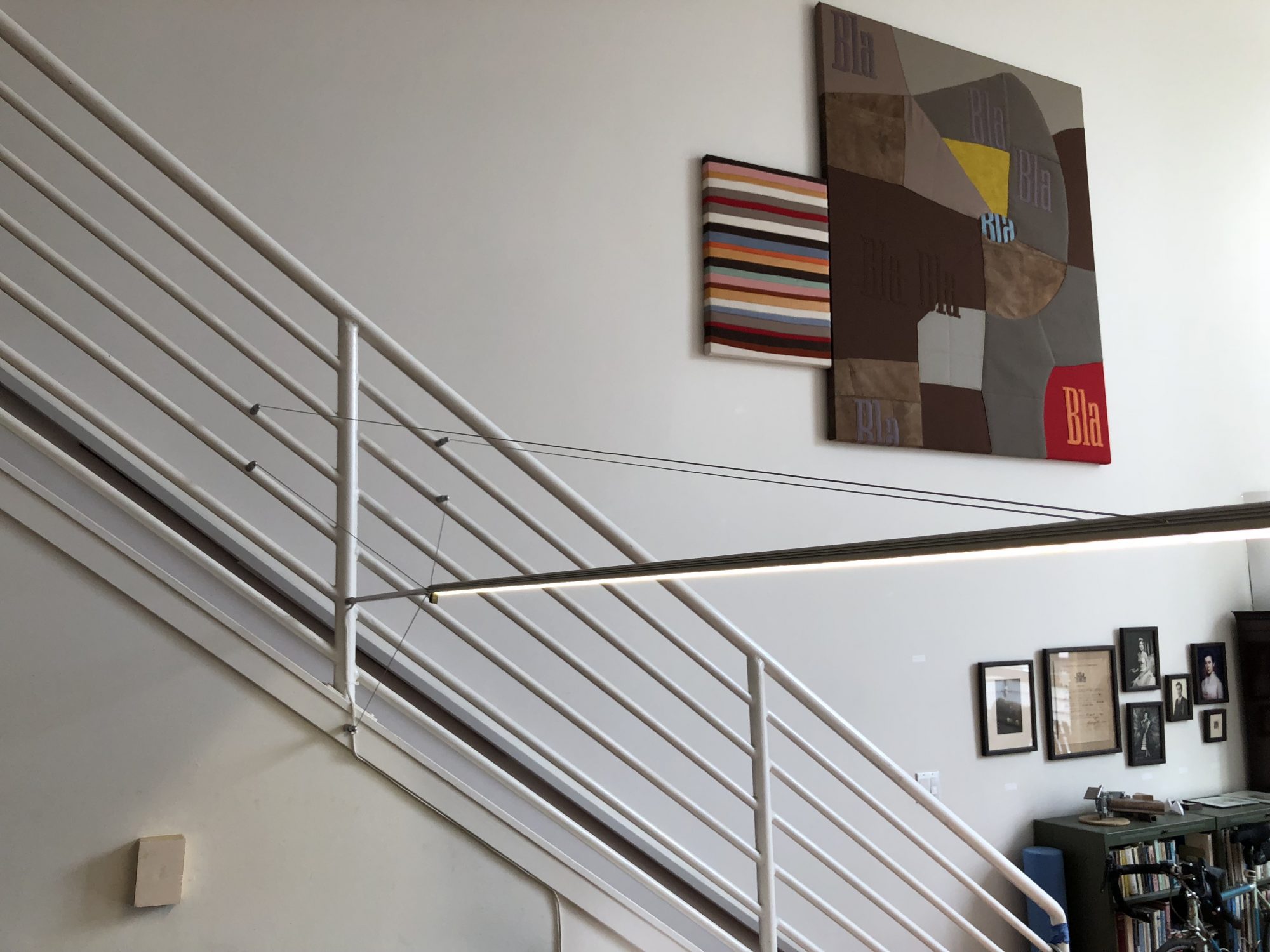 Materials:  aluminum extrusion, stainless-steel aircraft cable, LED strip